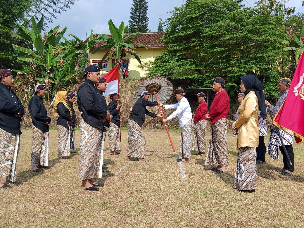 CAMAT KALIWIRO PASRAH TAMPI PANJI KEPADA KADES SELOMANIK, DALAM RANGKAIAN HARI JADI WONOSOBO KE 200, DILAPANGAN TEMENGGUNG SELOMANIK
