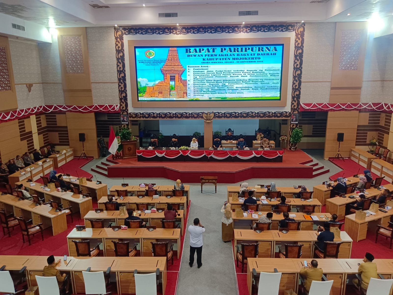 Paripurna ini dilaksanakan di Ruang Sidang Graha Whicesa DPRD Kabupaten Mojokerto, Jalan RAA. Basoeni 35 Sooko.