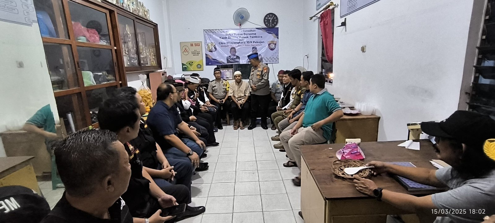Kanit Binmas Polsek Tambora, Iptu Agus Sudrajat, S.H., didampingi Bhabinkamtibmas Kelurahan Pekojan, Aiptu Dede Sugiono, melaksanakan buka puasa bersama dengan jajaran Pokdar Kamtibmas Subsektor Pekojan, Kepengurusan Sektor Tambora, serta Kepengurusan Barat pada Sabtu (15/3/2025).