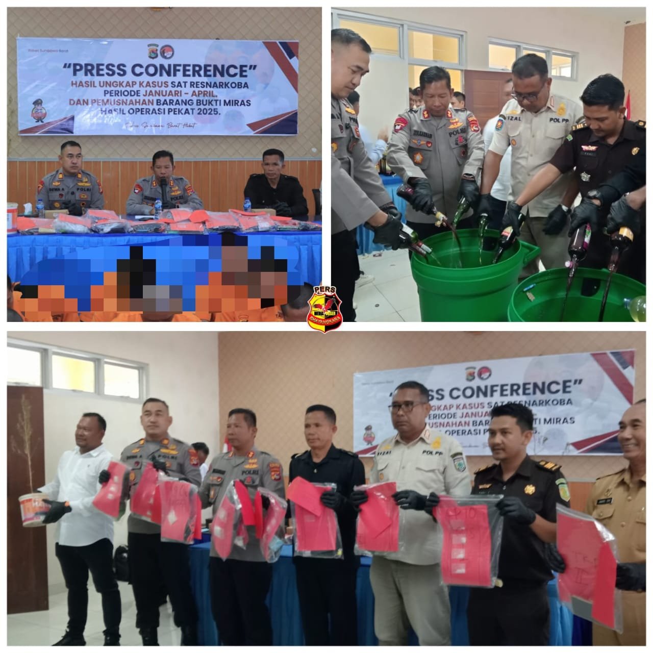 Dalam konferensi pers tersebut, AKBP Zulkarnain menyampaikan bahwa sejak bulan Januari hingga April 2025, Polres Sumbawa Barat berhasil mengungkap 20 kasus tindak pidana narkotika, dengan jumlah tersangka sebanyak 24 orang (laki-laki 23 orang dan perempuan 1 orang) Jumlah barang bukti yang disita secara keseluruhan yakni 224,45 gram sabu-sabu dan 2 pohon ganja.