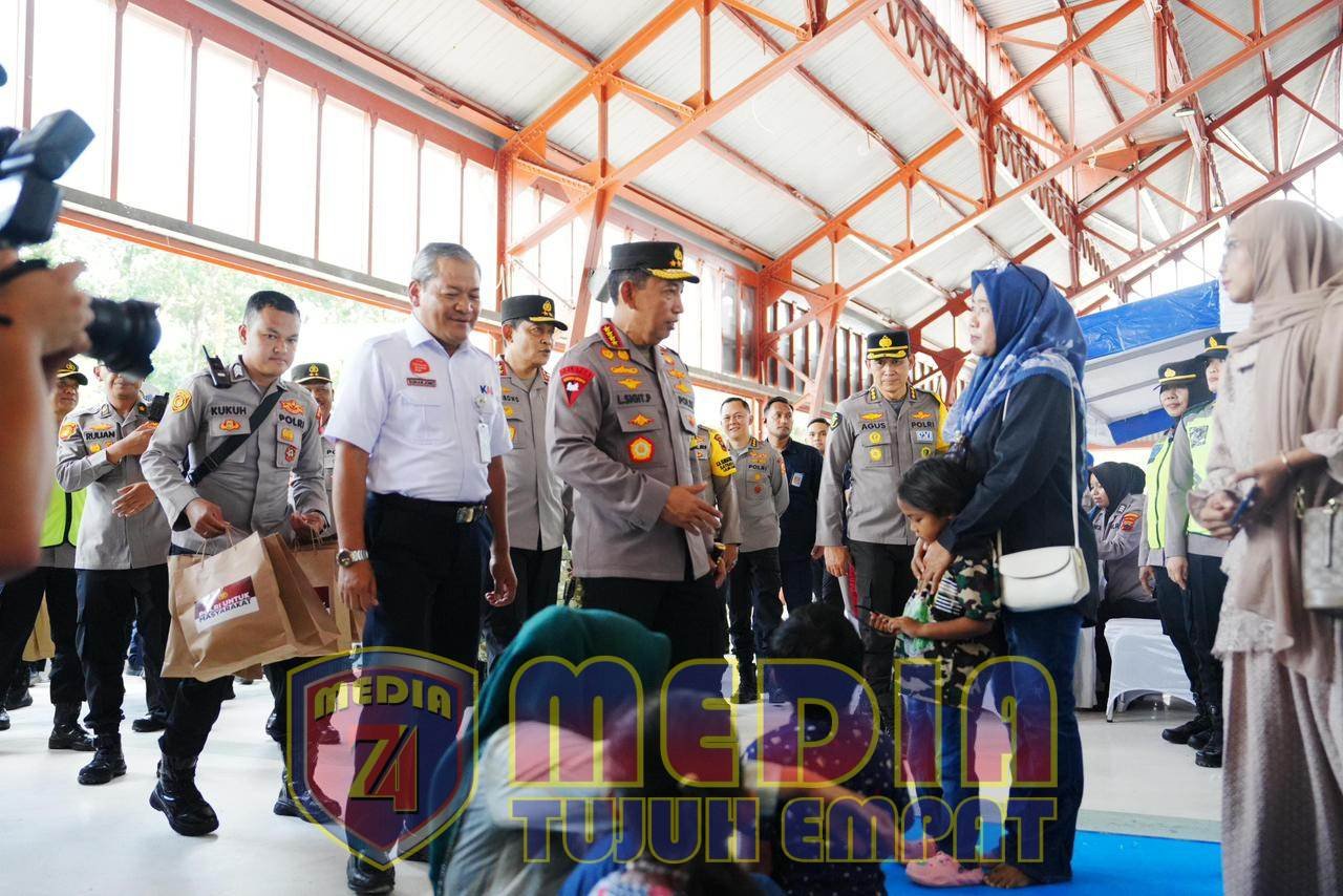 Kapolri juga menyempatkan diri menyapa para penumpang di ruang tunggu keberangkatan serta membagikan goodie bag sebagai bentuk perhatian dan dukungan kepada masyarakat yang akan melakukan perjalanan. Selain itu, Kapolri menyerahkan paket bantuan sosial secara simbolis kepada perwakilan petugas lintas sektor, meliputi unsur TNI, Polri, Dinas Perhubungan, tenaga kesehatan KAI, dan Polsuska.