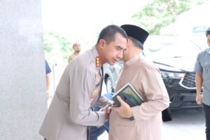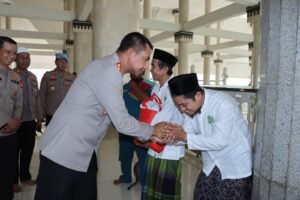 Kedatangan Kombes Pol Twedi dan jajarannya disambut hangat oleh para jamaah yang hadir.