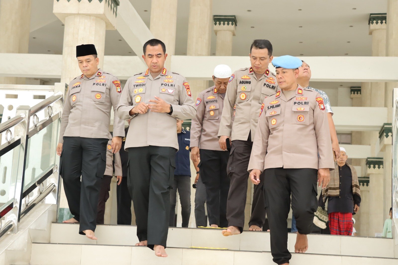 Dalam suasana penuh khidmat bulan suci Ramadhan, Kapolres Metro Jakarta Barat Kombes Pol Twedi Aditya Bennyahdi melaksanakan Safari Ramadhan dengan menunaikan shalat Jumat berjamaah bersama warga di Masjid KH Hasyim Asyari, Jalan Daan Mogot Km 14,5, RT 03/14, Kelurahan Duri Kosambi, Kecamatan Cengkareng, Jakarta Barat, Jumat (14/3/2025).