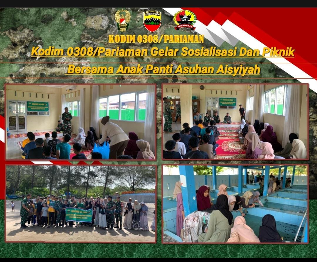 PARIAMAN, – Kodim 0308/Pariaman menggelar Sosialisasi Dan Piknik Bersama Anak Panti Asuhan Aisyiyah yang di selenggarakan di Kelurahan Taratak, Kec. Pariaman Tengah,Kota Pariaman, Sabtu (26/04/2025).