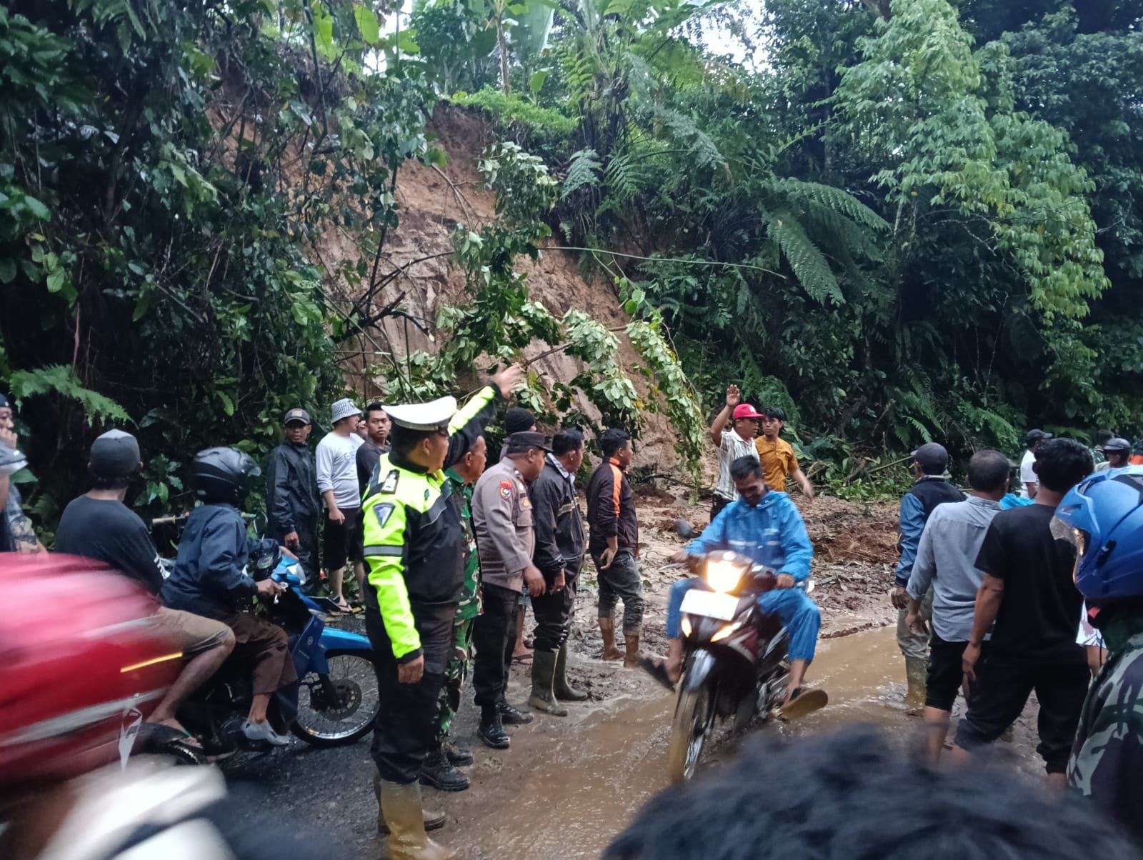 Material longsor sempat menutup sebagian badan jalan, sehingga arus kendaraan terganggu. Personel kepolisian bersama unsur TNI, Tagana dan masyarakat dengan sigap melakukan penanganan di lokasi untuk membuka jalan dan mengurai kemacetan sekaligus menjaga keamanan pengguna jalan. Sekitar pukul 18.30 WIB, jalur lalu lintas berhasil kembali normal setelah material berhasil dibersihkan.