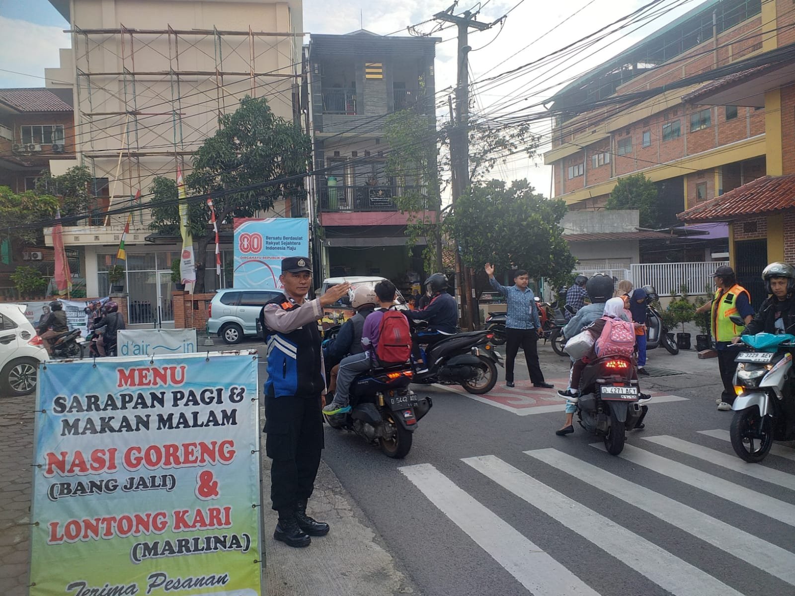 Personil Unit Binmas Polsek Arcamanik Lakukan Giat Pengaturan Arus Lalulintas pagi Hari