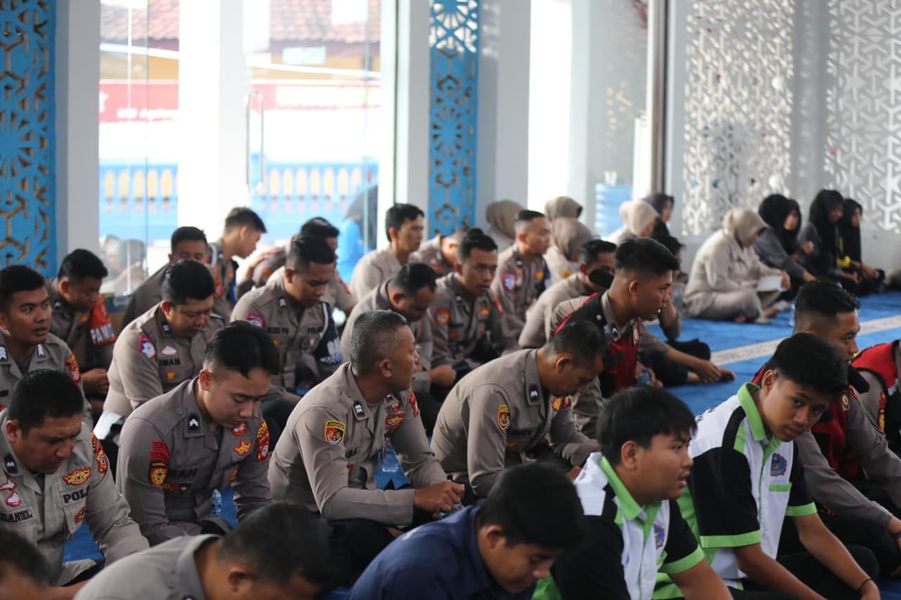 Kegiatan ini dipimpin langsung oleh Kapolres Garut, AKBP Yugi Bayu Hendarto, S.I.K., M.A.P. dengan menghadirkan penceramah Ustadz Oki Sujana dari Ponpes Al Islamiyyah yang membawakan tausiyah bertema “Tentang Haram”.
