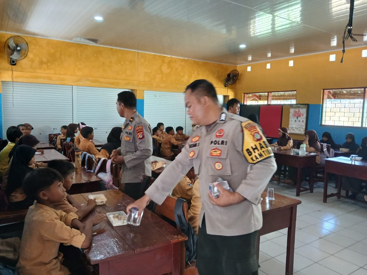 Polres Sumbawa Barat Dukung Program Makan Bergizi Gratis, Bagikan Makanan Sehat kepada siswa SD