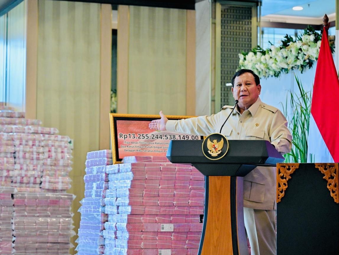 Presiden Prabowo Saksikan Penyerahan Uang Sitaan Hasil Korupsi  Rp 13,25 Triliun di Kejaksaan Agung