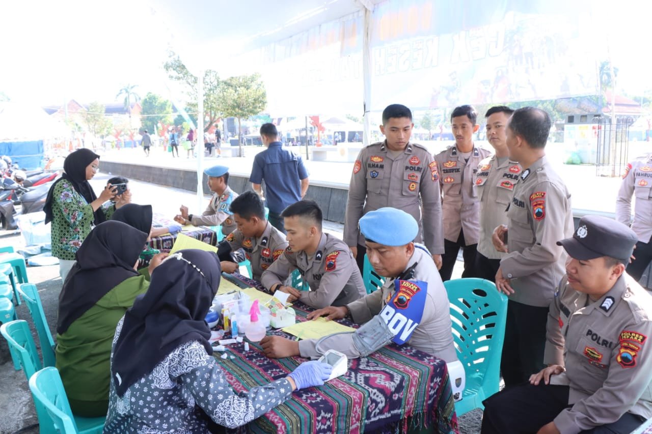 Sinergitas TNI dan Polri di Kabupaten Jepara semakin kokoh dengan partisipasi personel Kepolisian Resor (Polres) Jepara, Polda Jawa Tengah, mengikuti donor darah di Alun-Alun 1 Jepara, pada hari Kamis (2/10/2025).