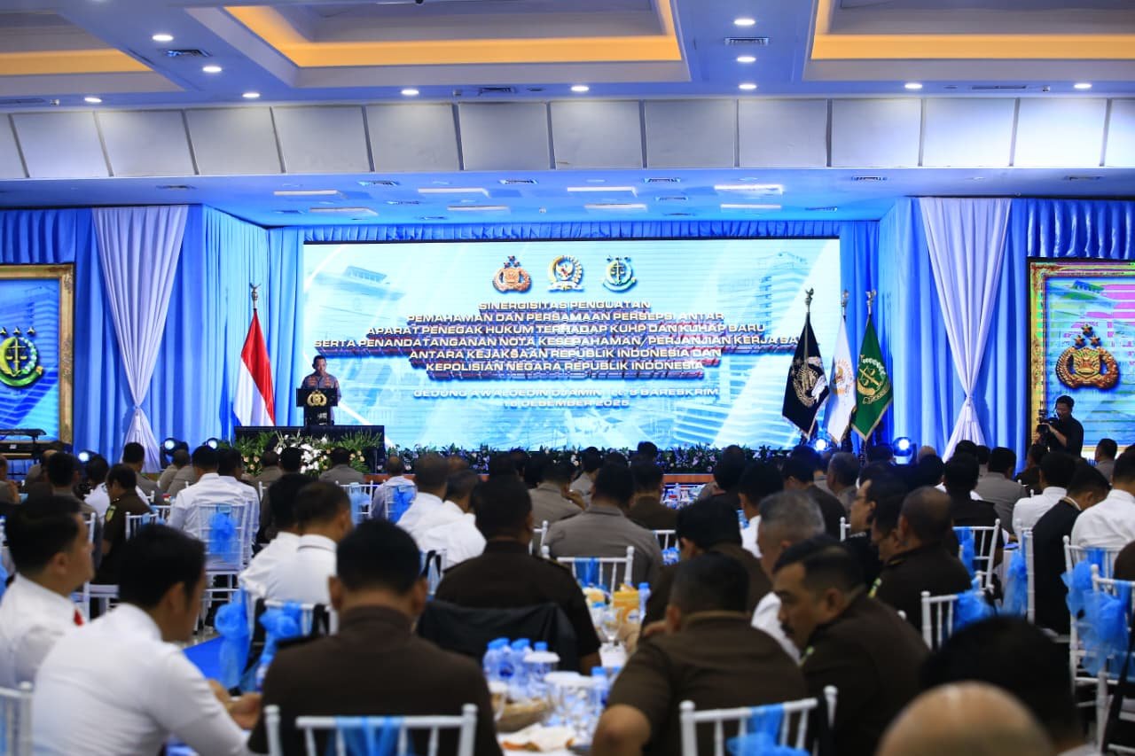 Kepala Kepolisian Negara Republik Indonesia (Kapolri) Jenderal Polisi Listyo Sigit Prabowo menegaskan pentingnya sinergi antarpenegak hukum dalam pelaksanaan Kitab Undang-Undang Hukum Pidana (KUHP) dan Kitab Undang-Undang Hukum Acara Pidana (KUHAP) yang baru. Hal tersebut disampaikan Kapolri dalam kegiatan penandatanganan Nota Kesepahaman (MoU) yang dilanjutkan dengan Perjanjian Kerja Sama (PKS) antara Kepolisian dan Kejaksaan.