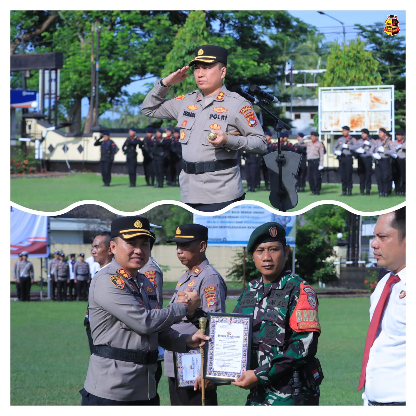 Setelah amanat, kegiatan dilanjutkan dengan pemberian penghargaan kepada personel yang menunjukkan prestasi dan dedikasi tinggi dalam menjalankan tugas. Penghargaan ini diberikan sebagai bentuk apresiasi terhadap kerja keras dan komitmen personel dalam menjaga keamanan dan ketertiban di wilayah hukum Polres Sumbawa Barat. Beberapa personel yang menerima penghargaan tersebut telah menunjukkan kinerja luar biasa, baik dalam penanganan kasus-kasus kriminal, pemeliharaan keamanan, maupun dalam kegiatan pelayanan masyarakat. Kapolres juga memberikan penghargaan kepada Babinsa Desa Tongo, Sertu Lalu Edi Karkir Zabadi, atas dedikasinya dalam pengungkapan kasus pencurian kabel di wilayah Kecamatan Sekongkang.