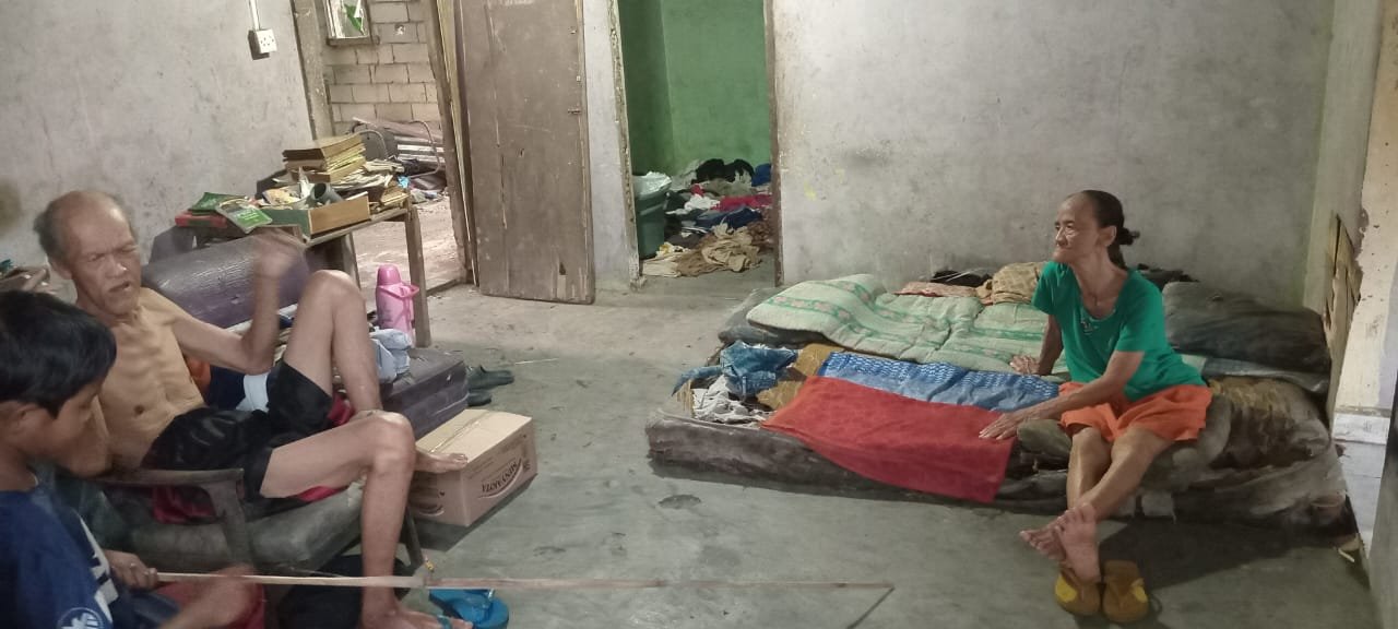 Saat di tanya kalau hujan gemana pak? Ia kalau hujan ya bocor kalau hujan malam ya tak bisa tidur mas bocor semua ujar nya dengan linangan air mata ,bagai mana tanggapan keluarga dan saudara saudara nya pak? Susah mas mereka orang kaya sudah senang semua mana pernah kemari apa lagi membantu ya pandai pandai saya lah untuk bertahan hidup ujar nya .