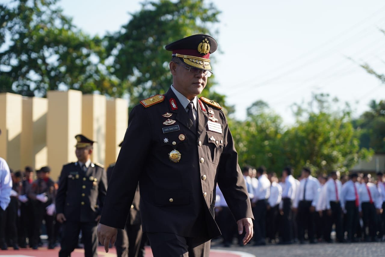 Usai rangkaian pelaksanaan upacara, Brigjen Pol. Hari Santoso menyampaikan pentingnya mengamalkan nilai-nilai Pancasila dalam setiap aspek kehidupan, terutama dalam pelaksanaan tugas sebagai anggota Polri.