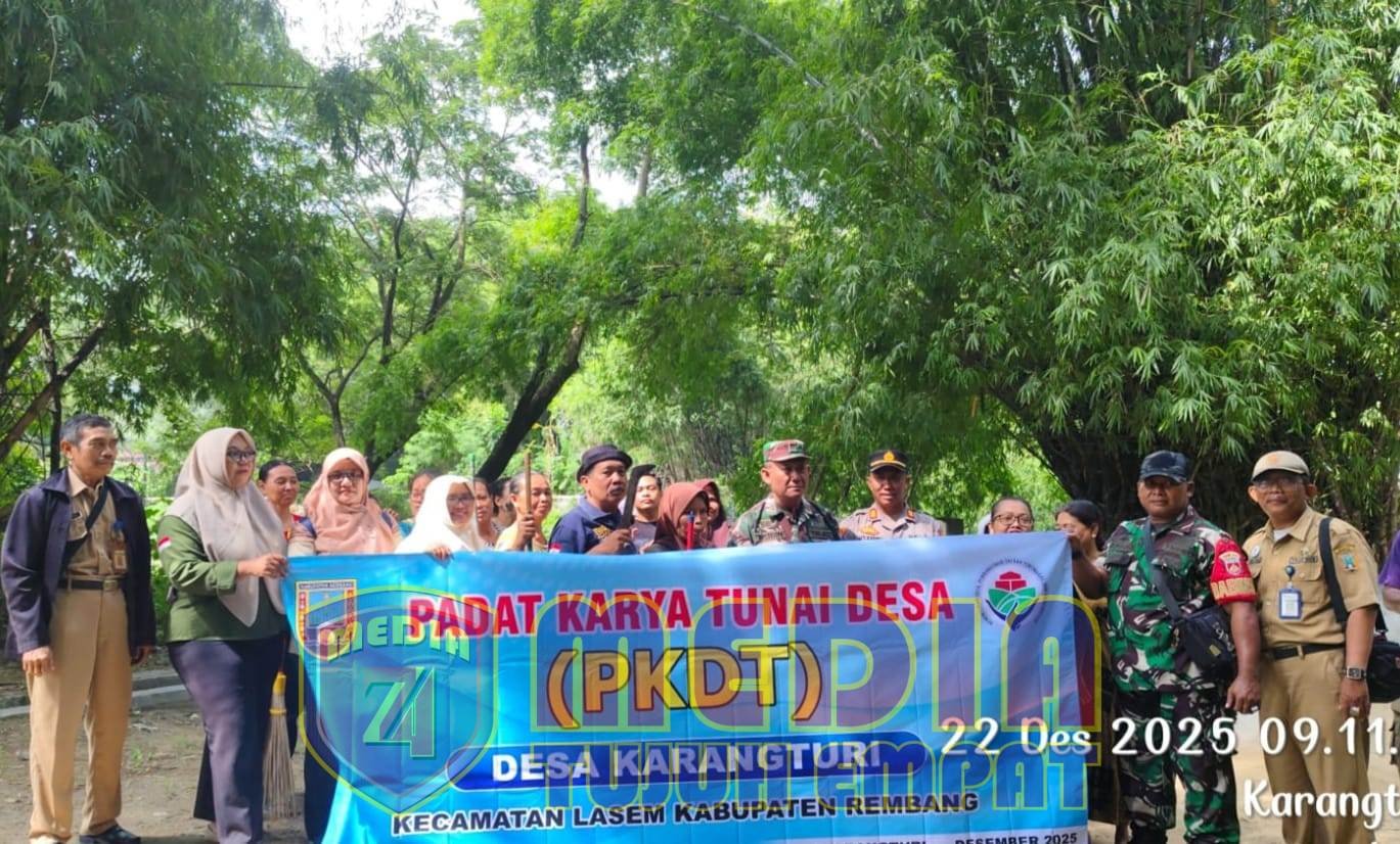 Rembang – Puluhan warga Dukuh Belik Desa Karangturi bersama jajaran Forkompimcam Lasem “turun gunung” bersih-bersih punden Mbah Sukeni, Senin (22/12). Kegiatan tersebut dibingkai dalam kegiatan Padat Karya Tunai Desa (PKTD) yang diprakarsai Kepala Desa bersama perangkat desa setempat.