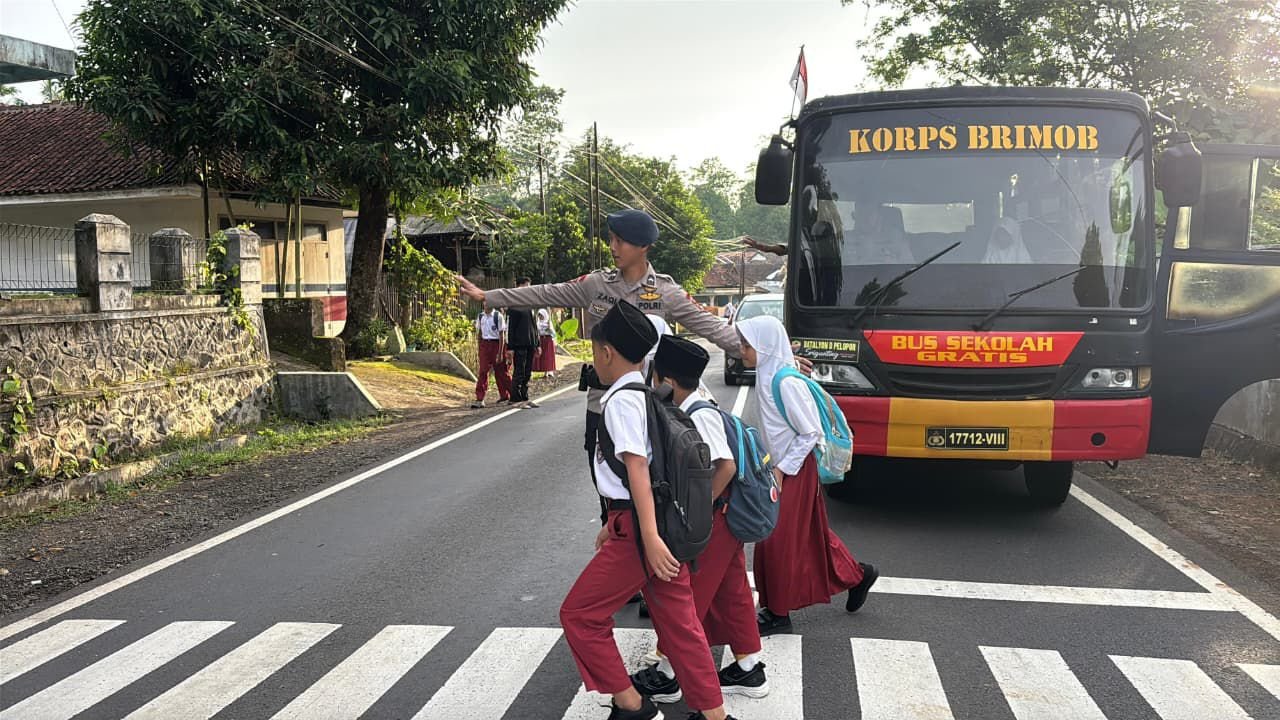Sebuah pemandangan yang penuh kepedulian tampak di wilayah Tasikmalaya. Personel Batalyon D Pelopor Satuan Brimob Polda Jawa Barat melaksanakan kegiatan sosial berupa pelayanan Bus Sekolah Gratis bagi para pelajar serta pengajar yang akan berangkat ke sekolah, Senin (8/12/2025).